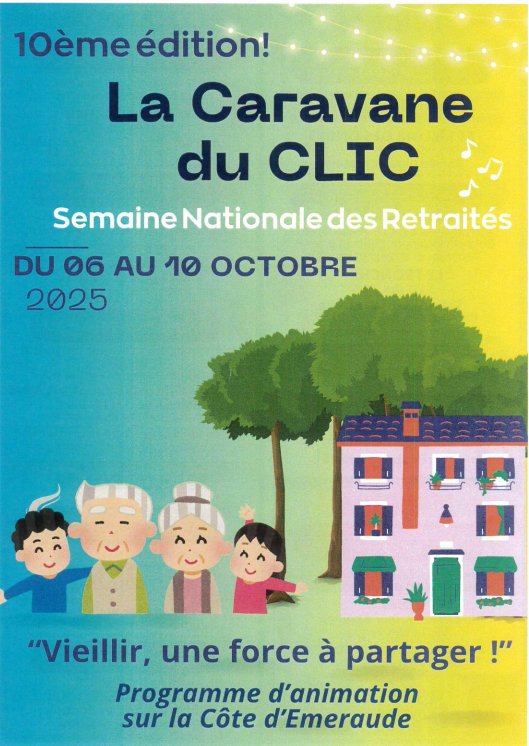 Depuis 2009, le CLIC de la Côte d’Émeraude organise, en partenariat avec de nombreux acteurs locaux (élus, établissements, associations, services autonomie, écoles, caisses de retraite...), une semaine d’événements dans le cadre de la Semaine Bleue, rendez-vous national dédié aux retraités et aux personnes âgées.