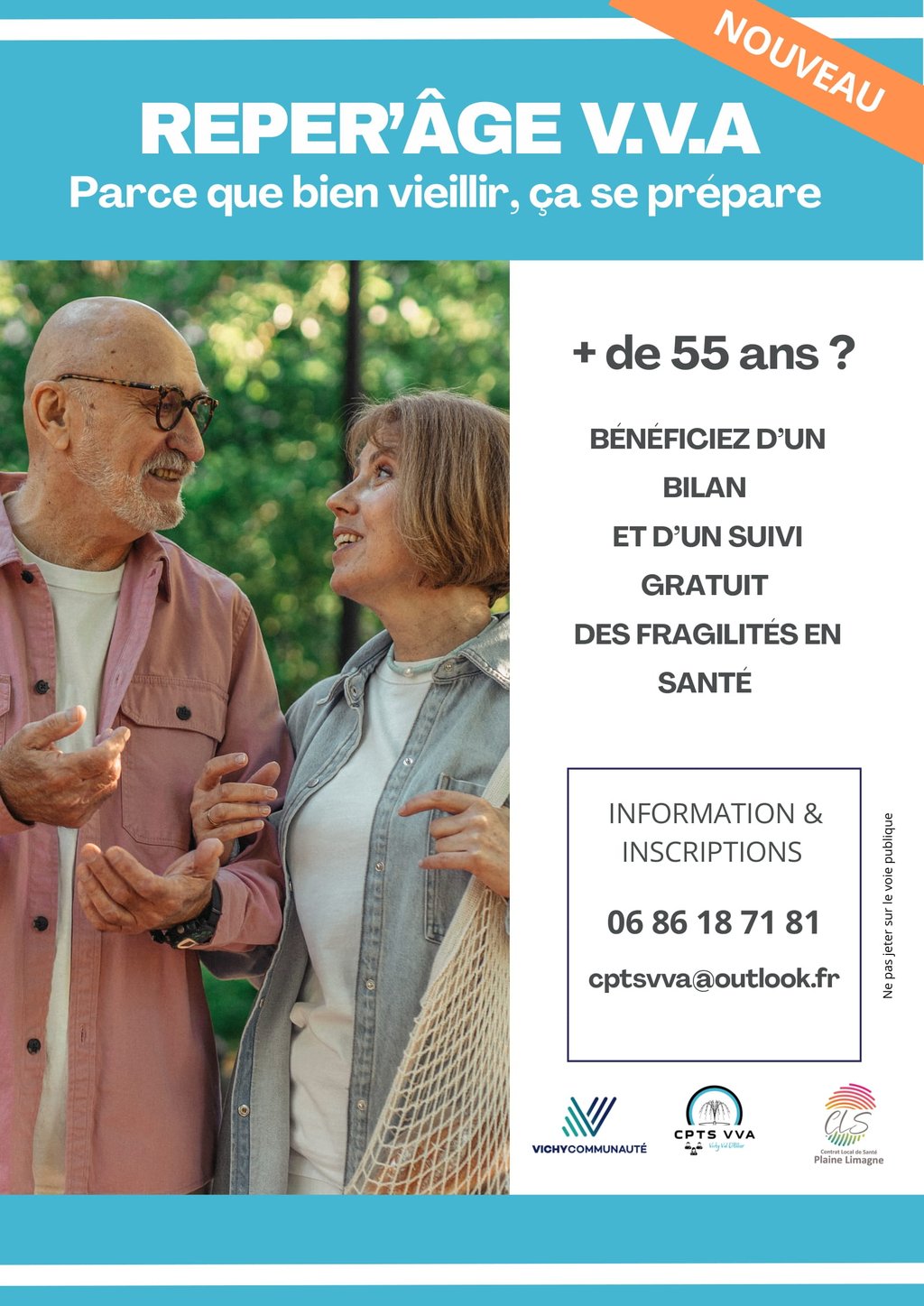 La Communauté Professionnelle Territoriale de Santé (CPTS) Vichy Val d’Allier met en place un nouveau dispositif intitulé « Repèr’Age VVA – Bien vieillir, ça se prépare ».