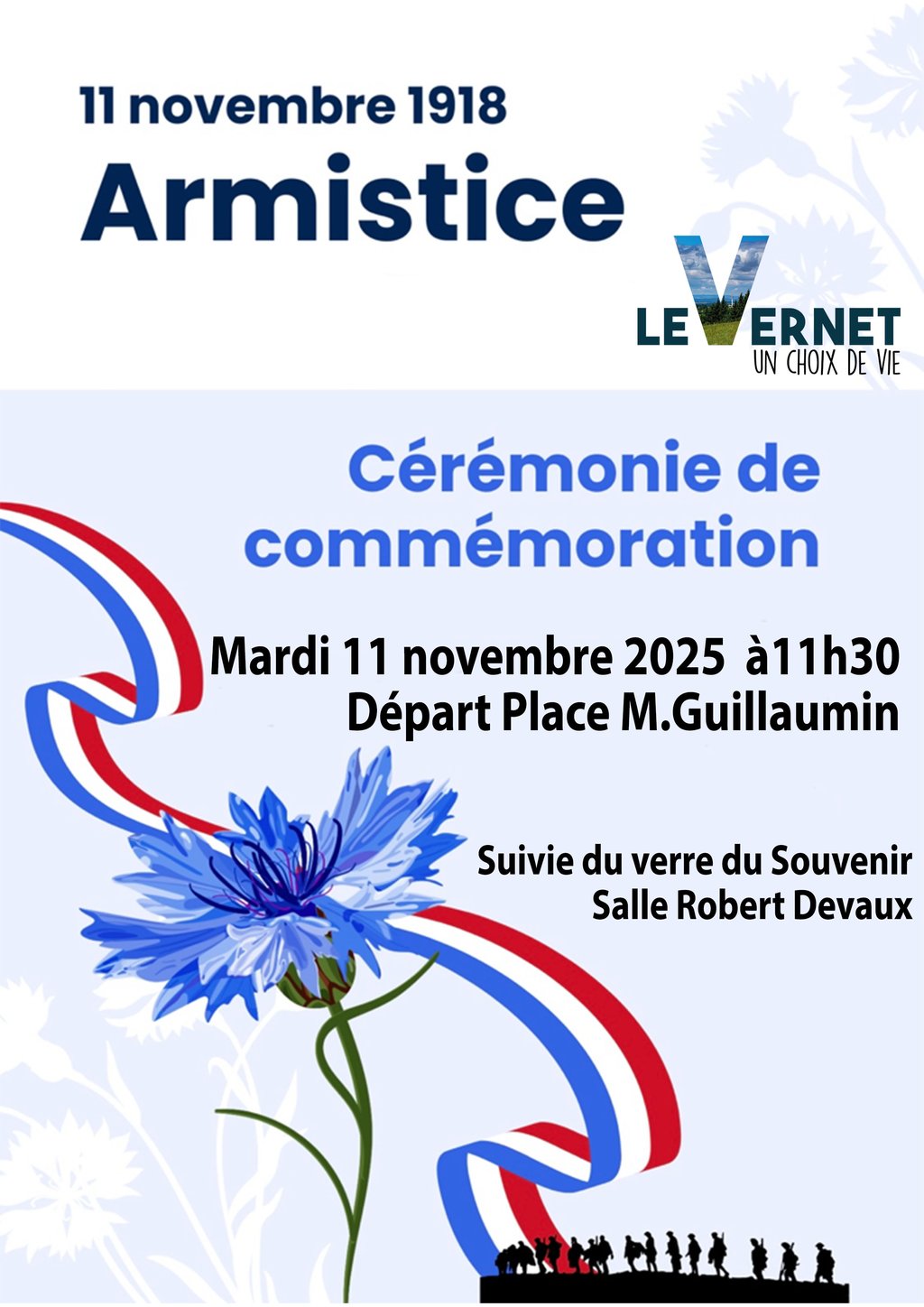 Le défilé du 11 novembre partira à 11 h 30 de la Place Marcel Guillaumin et se rendra au cimetière pour un dépôt de gerbes au monument aux morts. La cérémonie se poursuivra par un vin d'honneur à la salle Robert Devaux.