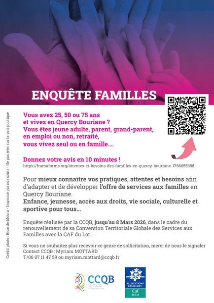 - un questionnaire pour les plus de 24 ans: https://framaforms.org/attentes-et-besoins-des-familles-en-quercy-bouriane-1766055388