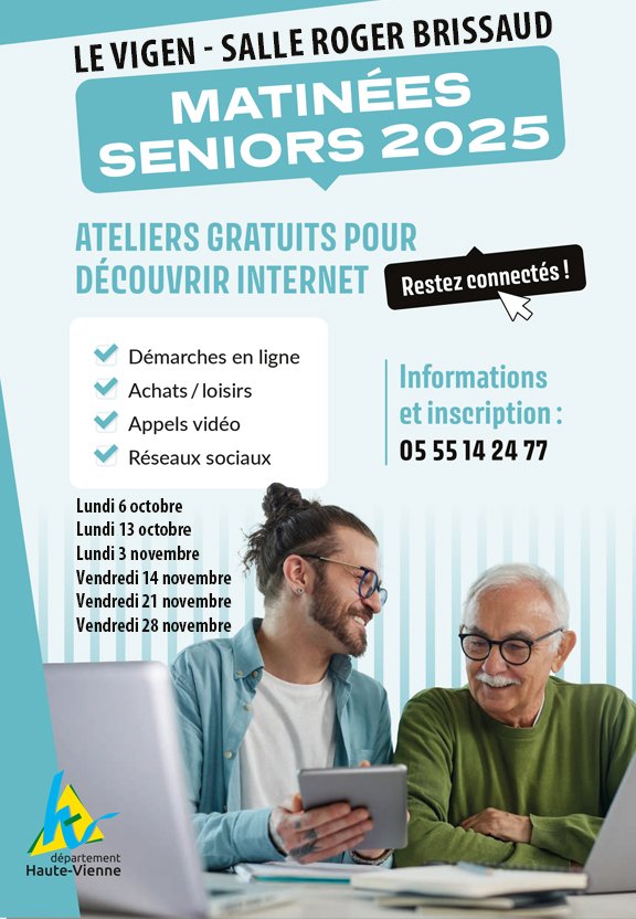 Vous souhaitez vous familiariser avec l’utilisation d’Internet ? Venez participer aux ateliers gratuits organisés par le Département de la Haute-Vienne dans votre commune ! Ces temps d’échange vont vous permettre d’apprendre à faire des démarches et des recherches simples en toute autonomie. Six Matinées seniors, abordant chacune un thème différent, sont proposées :