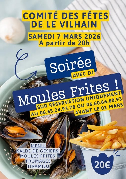 Le Comité des fêtes de Le Vilhain organise sa traditionnelle soirée Moules Frites.