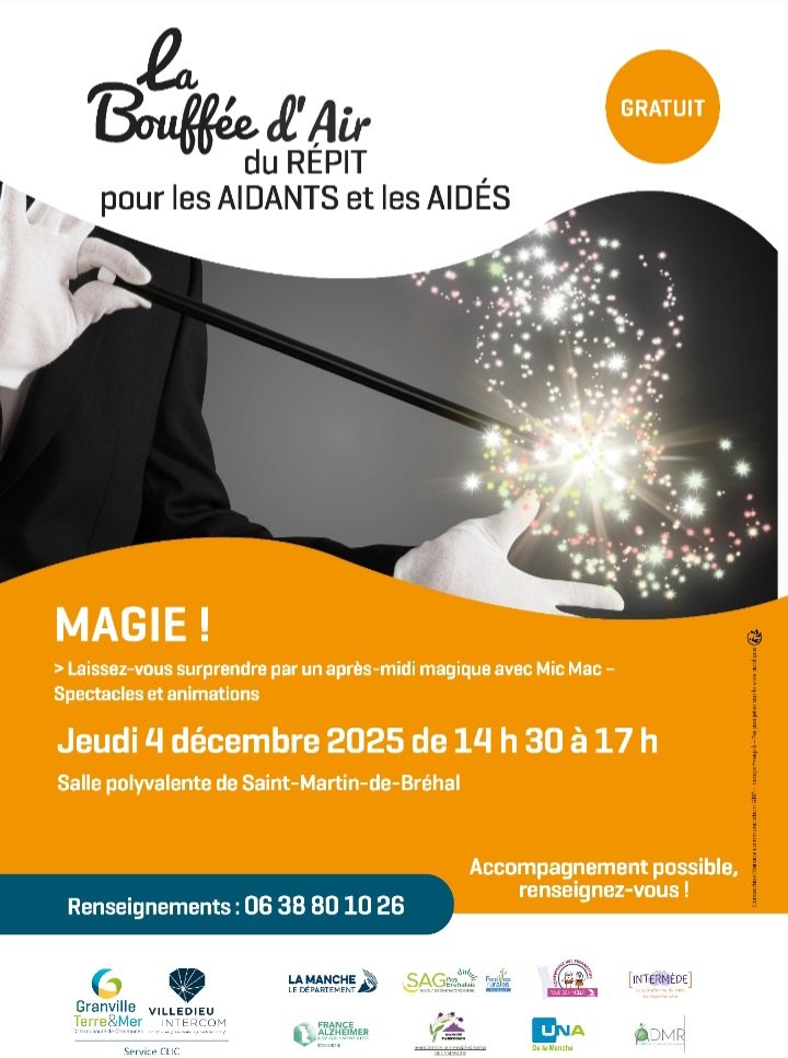 Une après-midi Bouffée d'air aura lieu à la salle polyvalente de St Martin de Bréhal, place Monaco le jeudi 4 décembre 2025 de 14 h 30 à 17 h 00