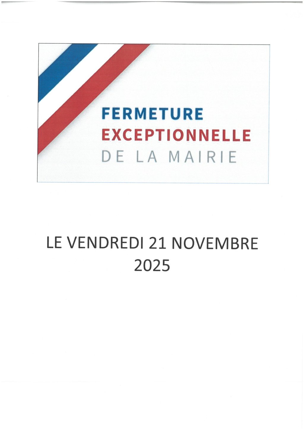 FERMETURE EXCEPTIONNELLE DE LA MAIRIE LE VENDREDI 21 NOVEMBRE 2025