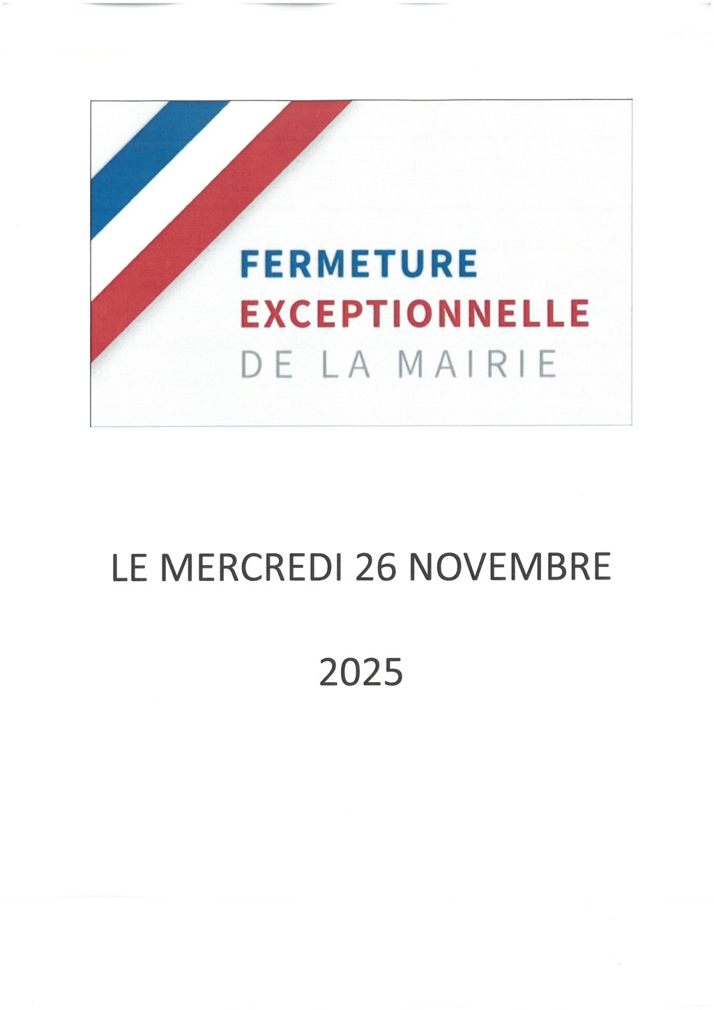 FERMETURE EXCEPTIONNELLE DE LA MAIRIE LE MERCREDI 26 NOVEMBRE 2025