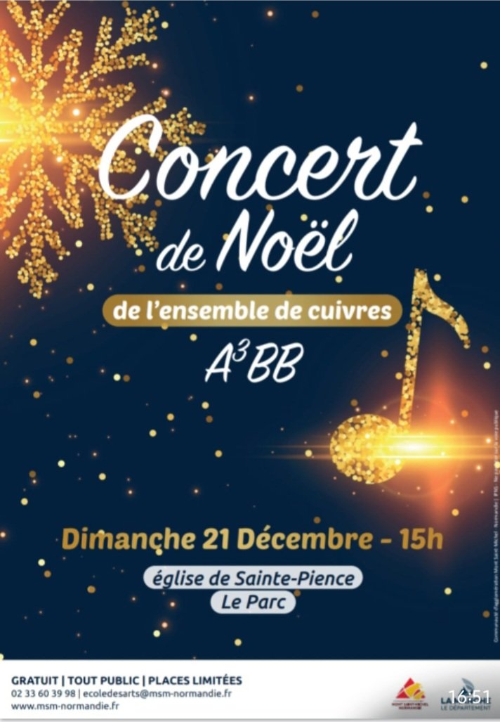 Un concert de Noël aura lieu le 21 décembre 2025 à 15h en l'église de Sainte-Pience Le Parc