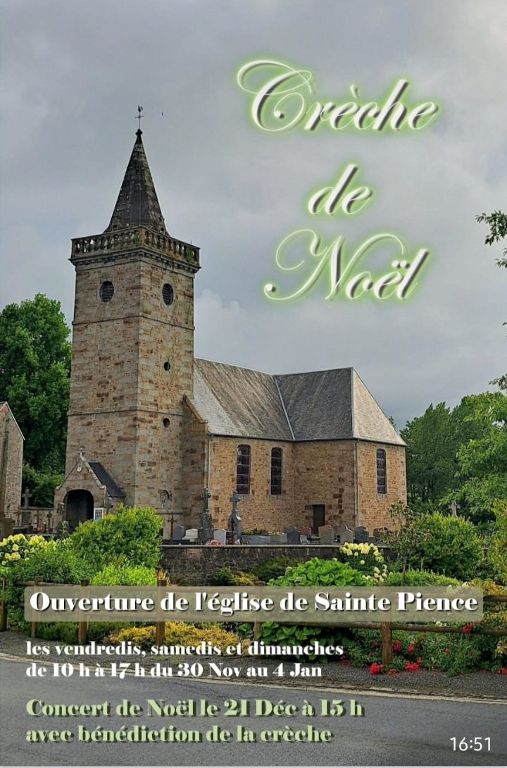Venez découvrir la crèche dans l'église de Sainte-Pience aux heures d'ouverture suivantes.