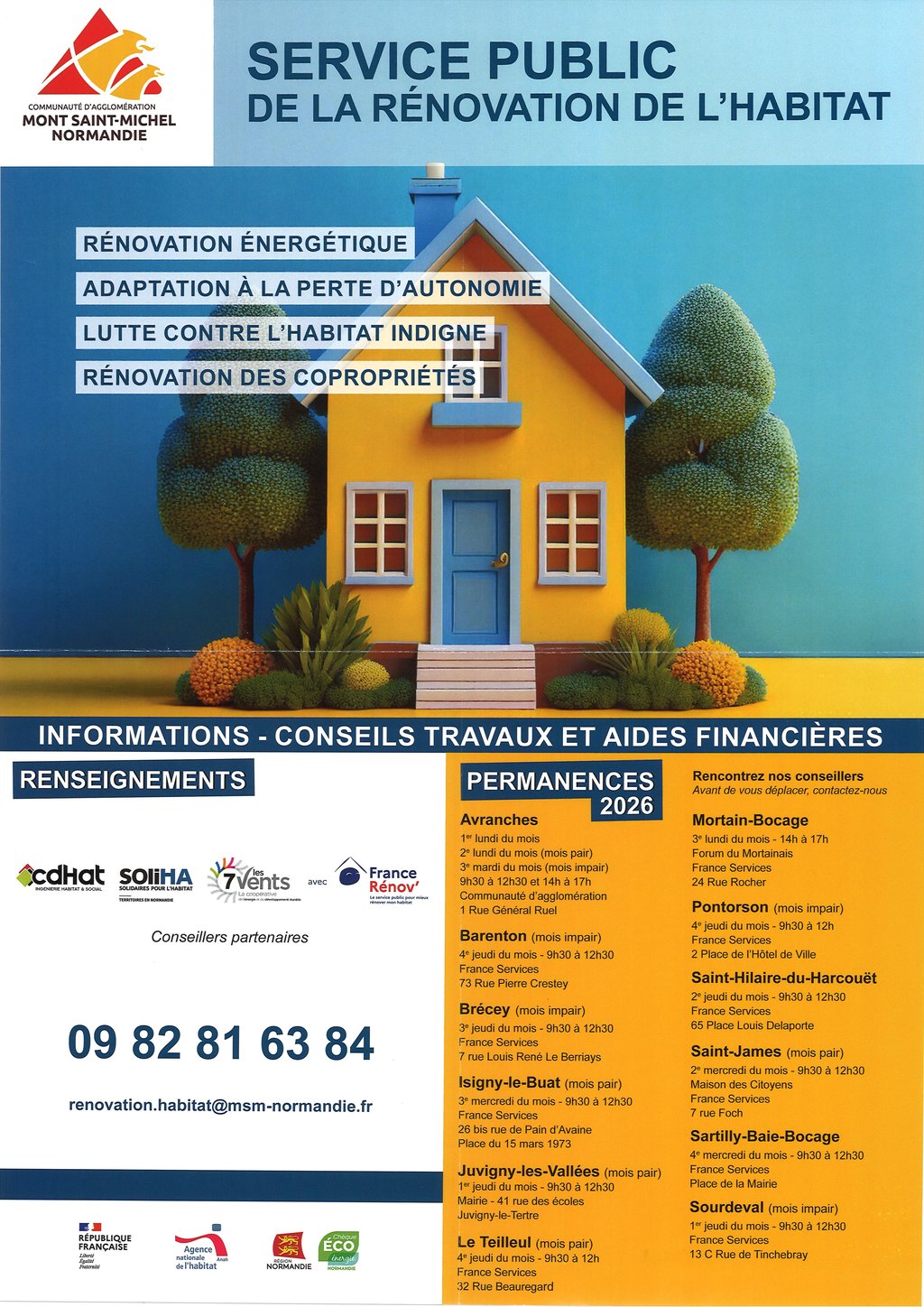 PERMANENCES 2026 : INFORMATIONS-CONSEILS ET TRAVAUX ET AIDES FINANCIÈRES RENSEIGNEMENTS