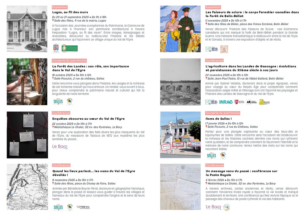 Le Musée d’histoire locale, porté par la Communauté de Communes du Val de l’Eyre, lance sa toute première programmation culturelle sur l’ensemble du territoire.
