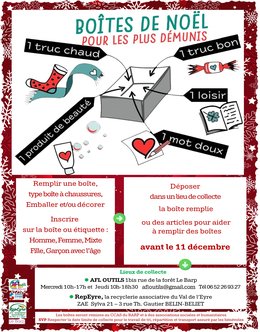 Opération Boîtes de Noël solidaire, pour un noël plus heureux, un geste chaleureux pour apporter sourire et réconfort aux plus démunis pendant les fêtes.