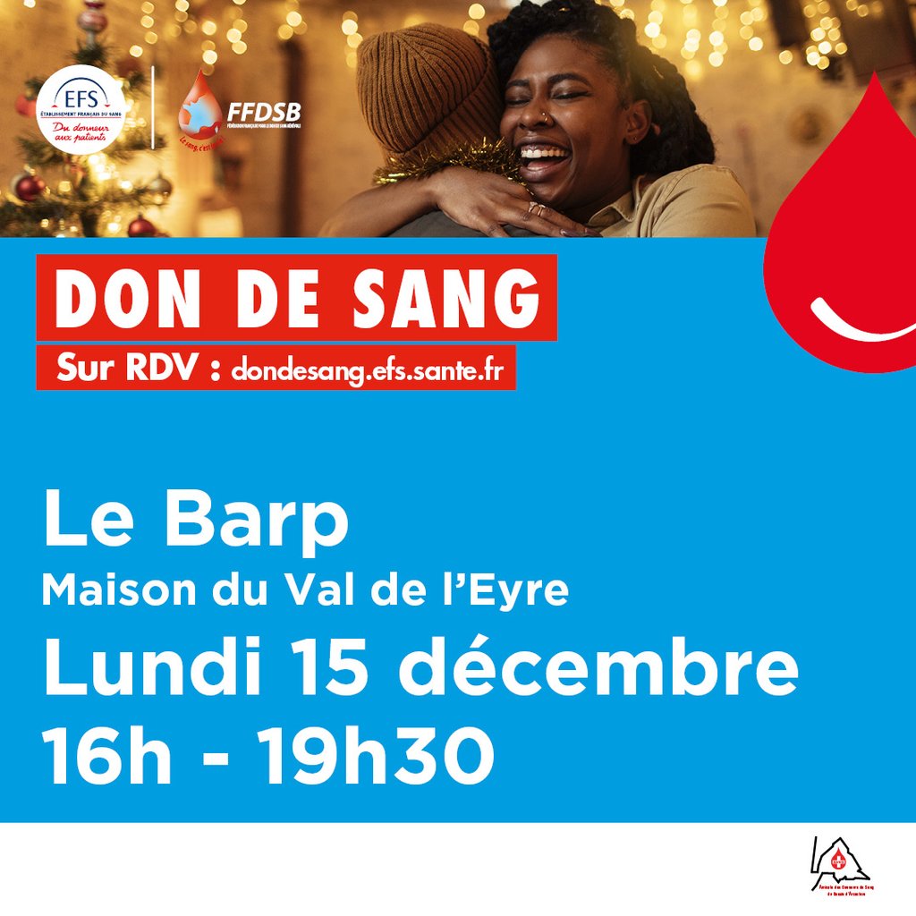 COLLECTE DE SANG AU BARP – LE LUNDI 15 DECEMBRE