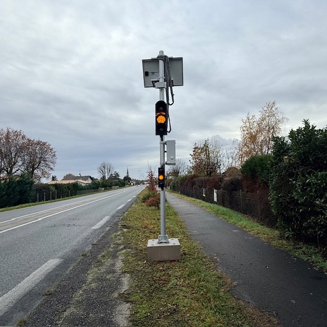 ℹ️ Le feu est installé, mais sera opérationnel à partir de la semaine du 15 décembre. D’ici là , continuez à être vigilants !