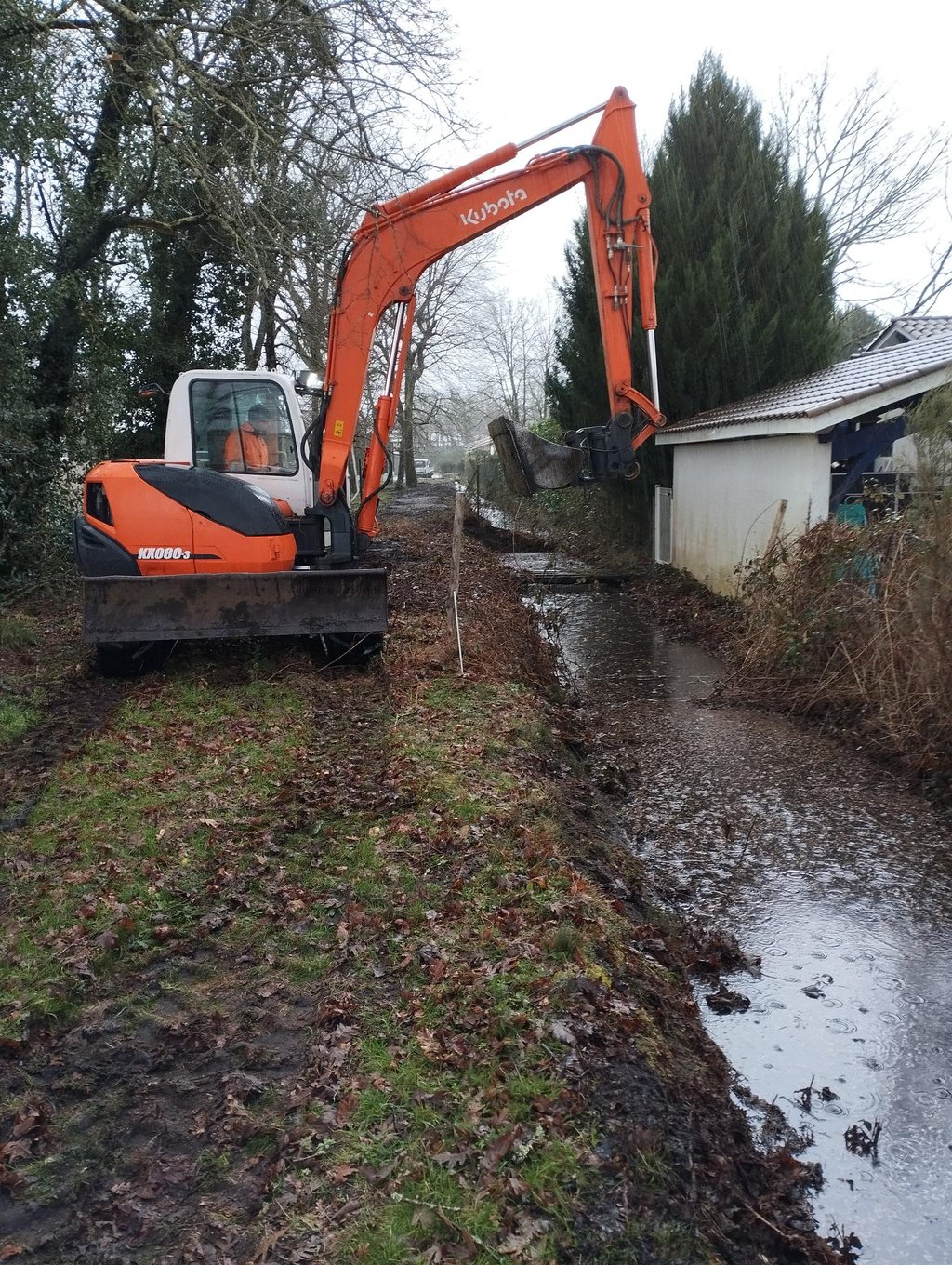 Curage effectué à la mini-pelle afin de faciliter l’écoulement des eaux pluviales