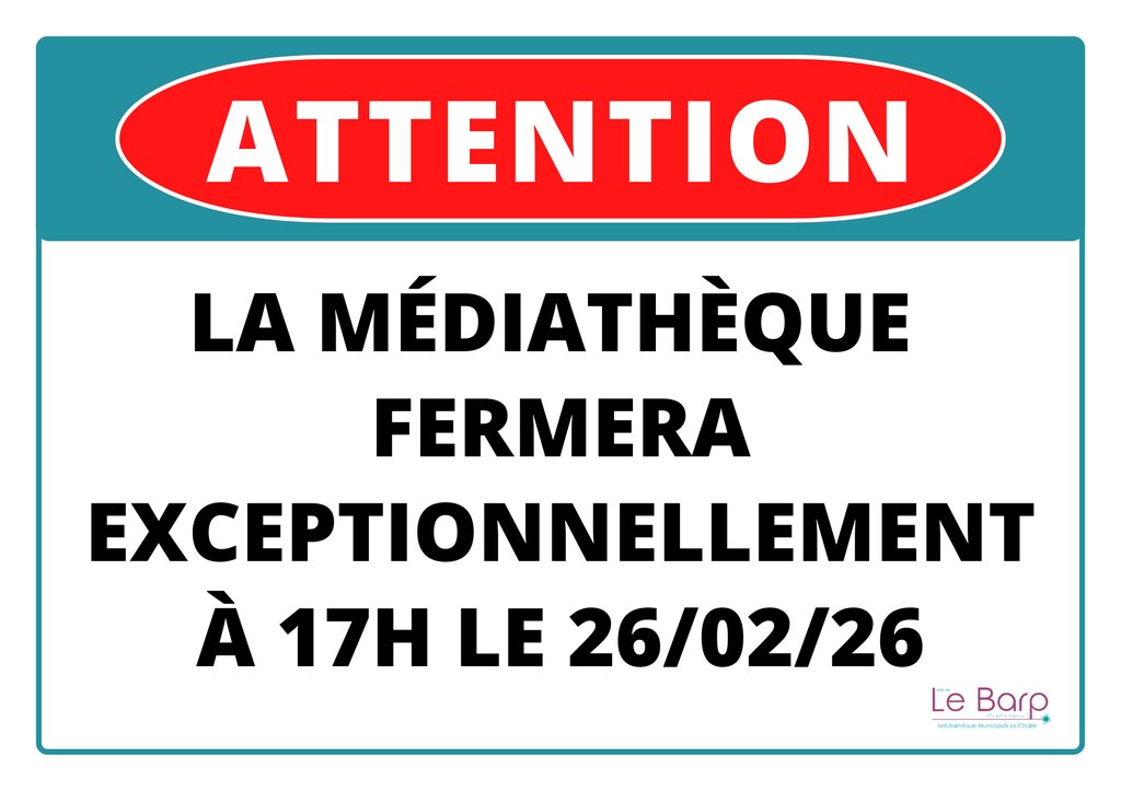 FERMETURE MÉDIATHÈQUE 17H - JEUDI 26 FEV