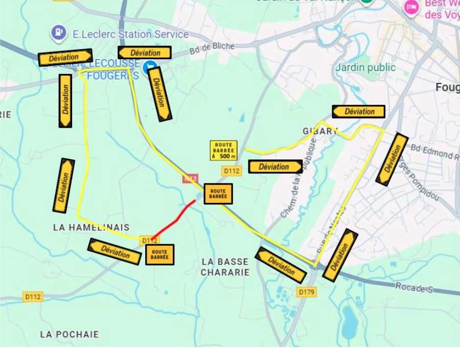 La Ville de Fougères va rĂ©aliser des travaux de renouvellement du rĂ©seau d’eau potable dĂ©but janvier 2026, sur la RD112, ainsi que sur les voies communales La Tangougère et La Chararie. Ces travaux seront rĂ©alisĂ©s par l'entreprise OUEST Travaux Publics sur une durĂ©e d’environ 2 semaines.Â