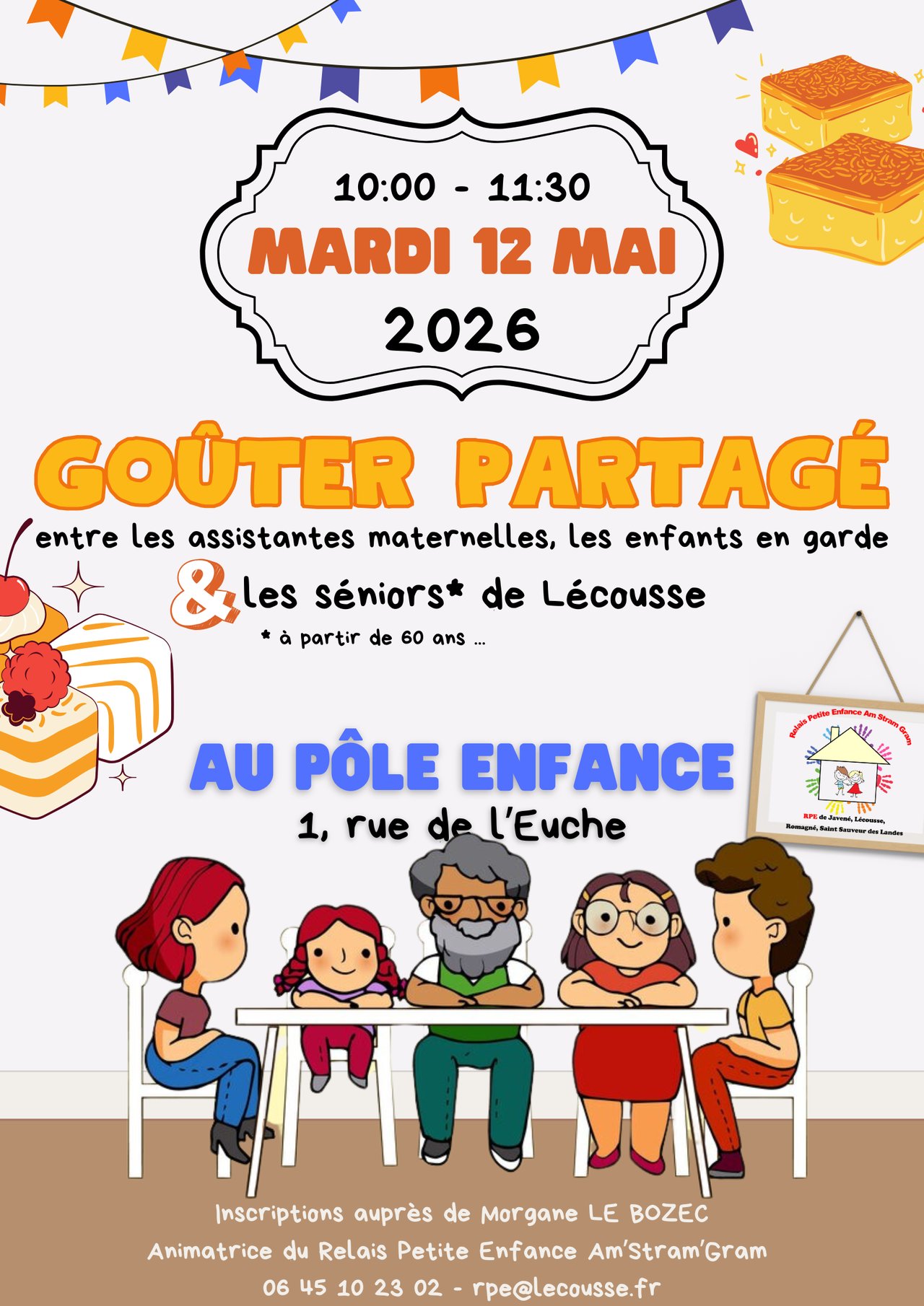 Les séniors de Lécousse 👵👴, venez passer un moment convivial 🤝 avec les assistantes maternelles 👩🍼 et les enfants en garde 👶🧸 !