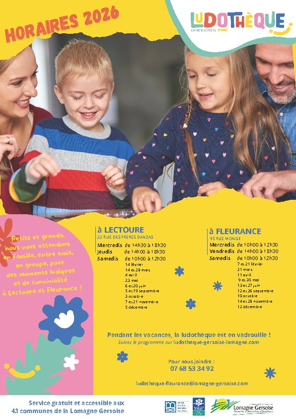 Le créneau horaire du jeudi à Lectoure a été prévu pour l’accueil de groupes scolaires, périscolaires, internes. Il est également possible d’emprunter des jeux pour vos écoles, accueils périscolaires ou animation de foyers.