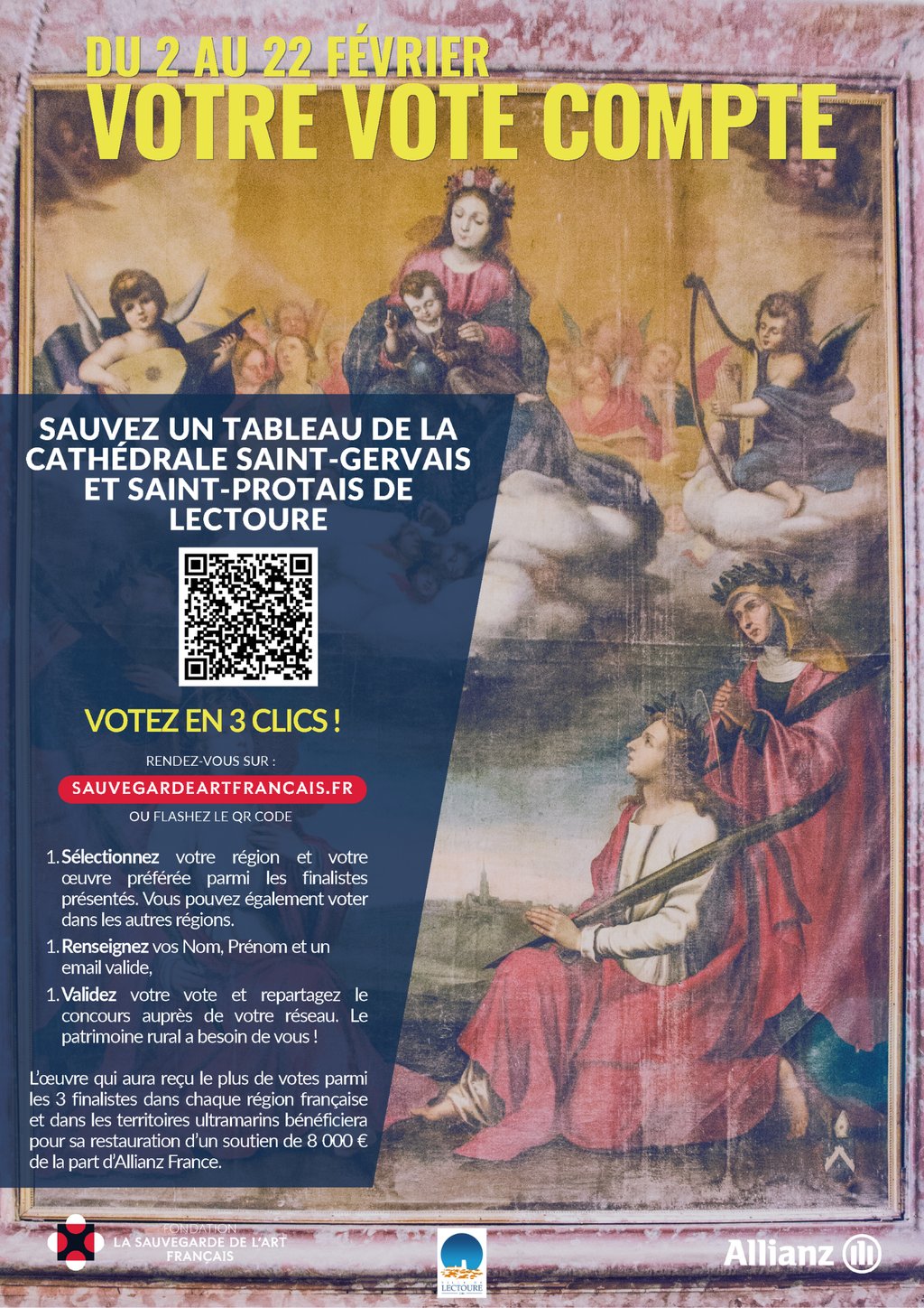 La ville de Lectoure invite tous les habitants et Amis de Lectoure à voter massivement pour la restauration du tableau « Lectoure (32) – Apothéose de Saint-Gervais et Saint-Protais ».