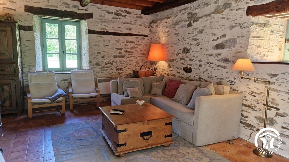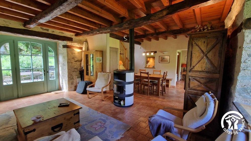 Connexion internet Wifi et téléphone. Jeux d'intérieur, bibliothèque et lecteur DVD avec DVD à disposition. En annexe, aménagé dans le fournil attenant au four à pain : salle de jeux avec table de ping-pong, badminton et 6 VTT à disposition. Jardin verdoyant de 2 hectares, bordé par la forêt privée et la rivière. Table de jardin, transats et barbecue Weber rond.