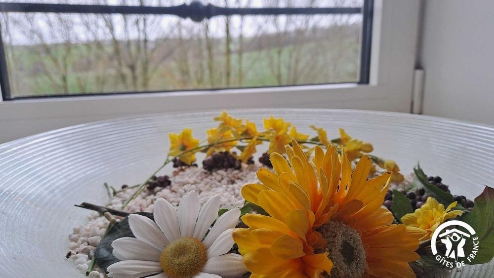 Gîte indépendant, à proximité d'une ferme et d'une résidence secondaire, tranquillité assurée ! La maison est sur une petite butte, donc vous pouvez y accéder de deux manières : soit par un escalier extérieur d'un côté de la maison, soit de plain-pied de l'autre côté en passant par le jardin et la terrasse