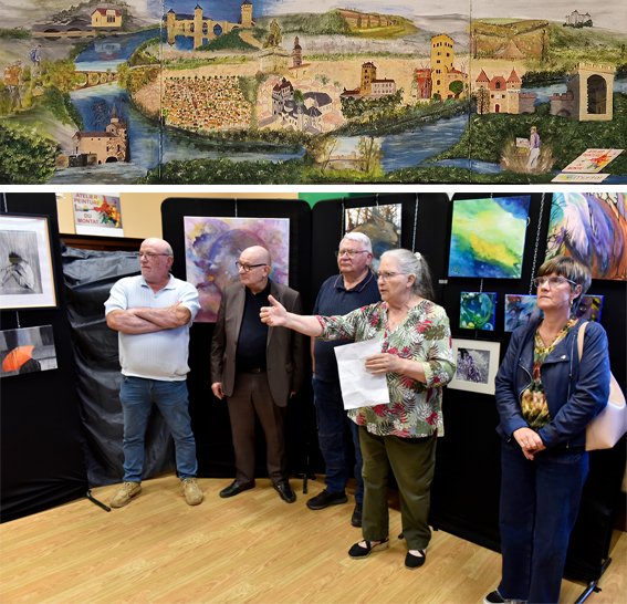 Une particularité cette année, un triptyque ( 4mx1m ) intitulé : « Les monuments de Cahors » réalisé collégialement par des artistes amateurs de l’atelier a été présenté ; cette fresque a particulièrement été remarquée et appréciée par tous les visiteurs présents. Ont peint les monuments d’après leurs dessins : Pierre DMYTROW, Jacky KAZMARECK, Marie SIGNORI ainsi qu’Arlette GUENOT, René JANOT, Colette MOREAU et Nathalie SOURSOU, qui ont de plus finalisé le tableau par des détails de verdure, l’eau du Lot et l’évocation de toits et immeubles.