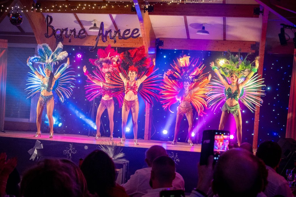 Au cours du repas, Le Glossy Cabaret a offert un spectacle de près de deux heures, proposant un véritable voyage musical mêlant danses du monde et clins d’œil aux plus grands cabarets parisiens. Les superbes costumes, faits de plumes, strass et paillettes, ont émerveillé le public, avant un French Cancan endiablé pour conclure la représentation.