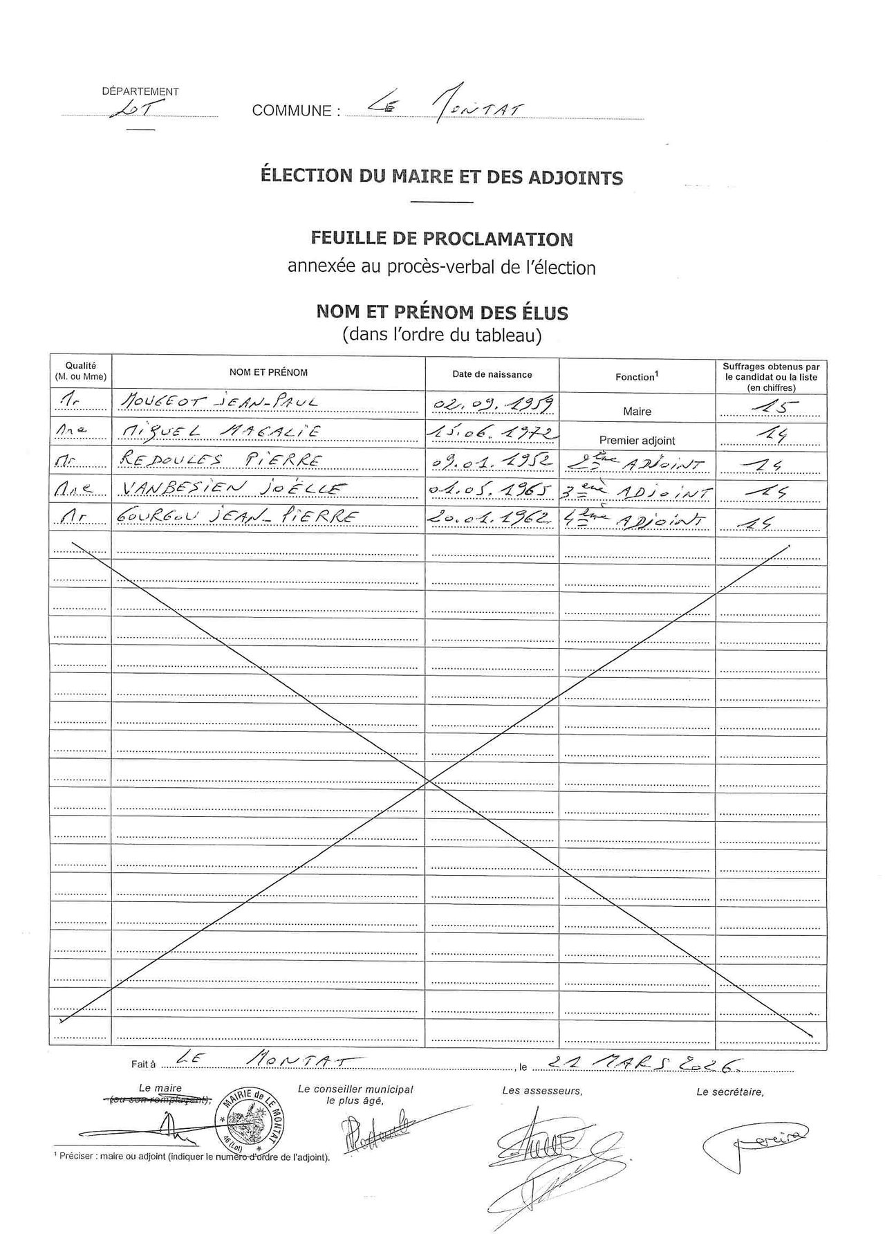 ÉLECTION DU MAIRE ET DES ADJOINTS