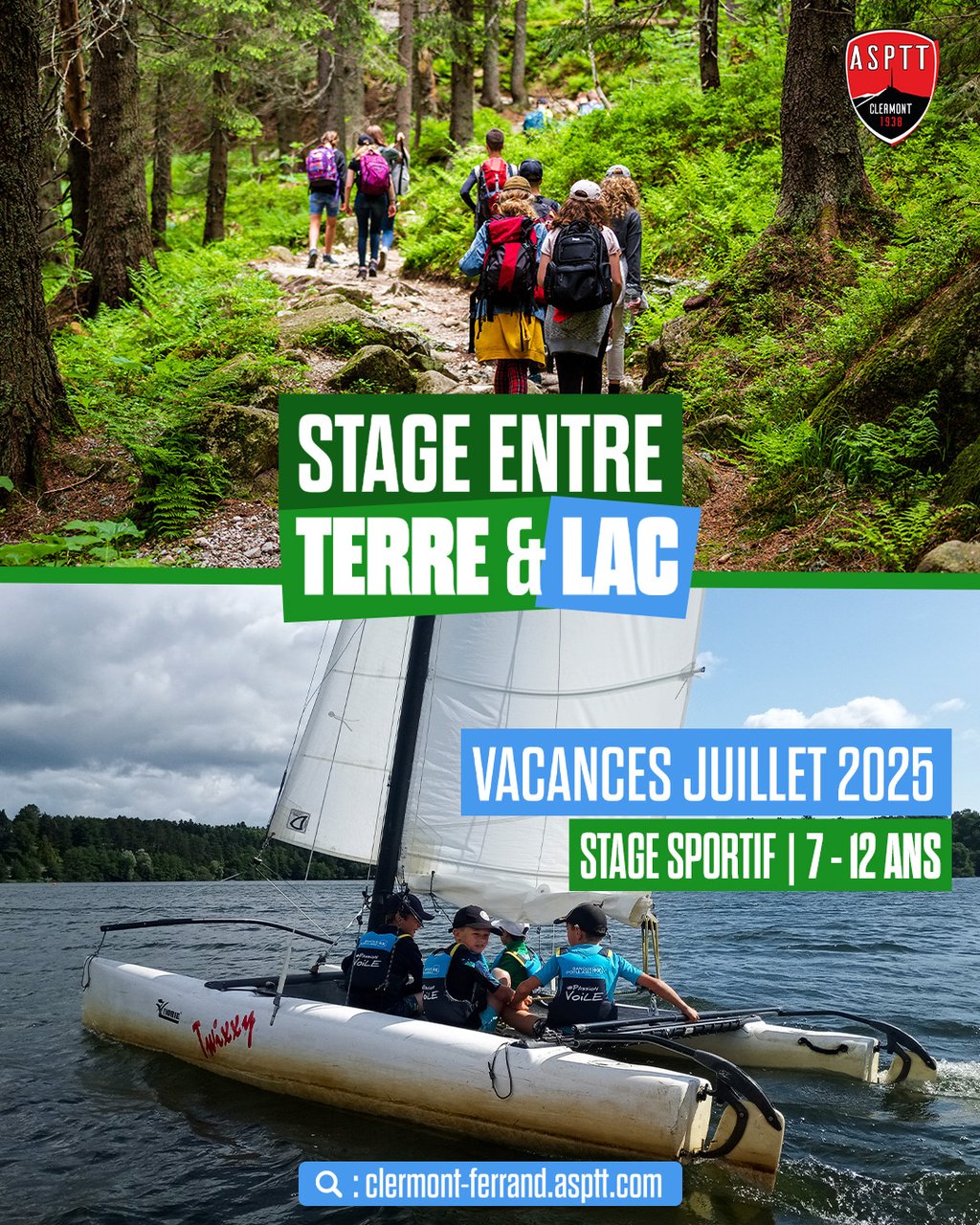Le stage entre TERRE & LAC à l'ASPTT Clermont invite les jeunes de 7 à 12 ans (révolus) à explorer les joies des activités de pleine nature, entre terre et lac.
