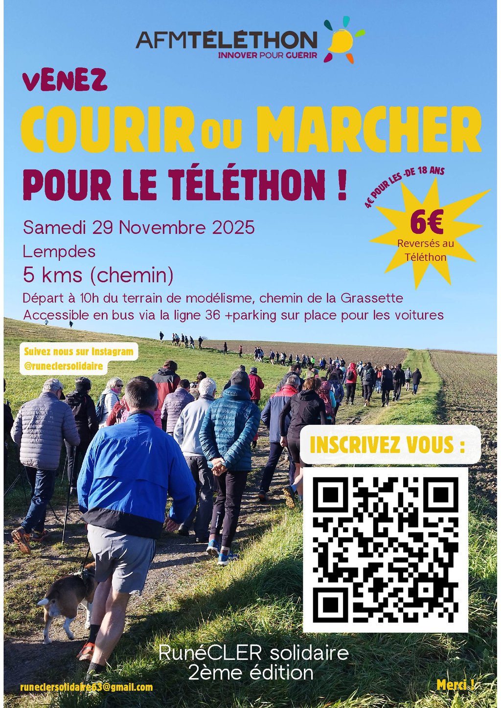 Venez courir ou marcher pour le Téléthon, samedi 29 novembre 2025.