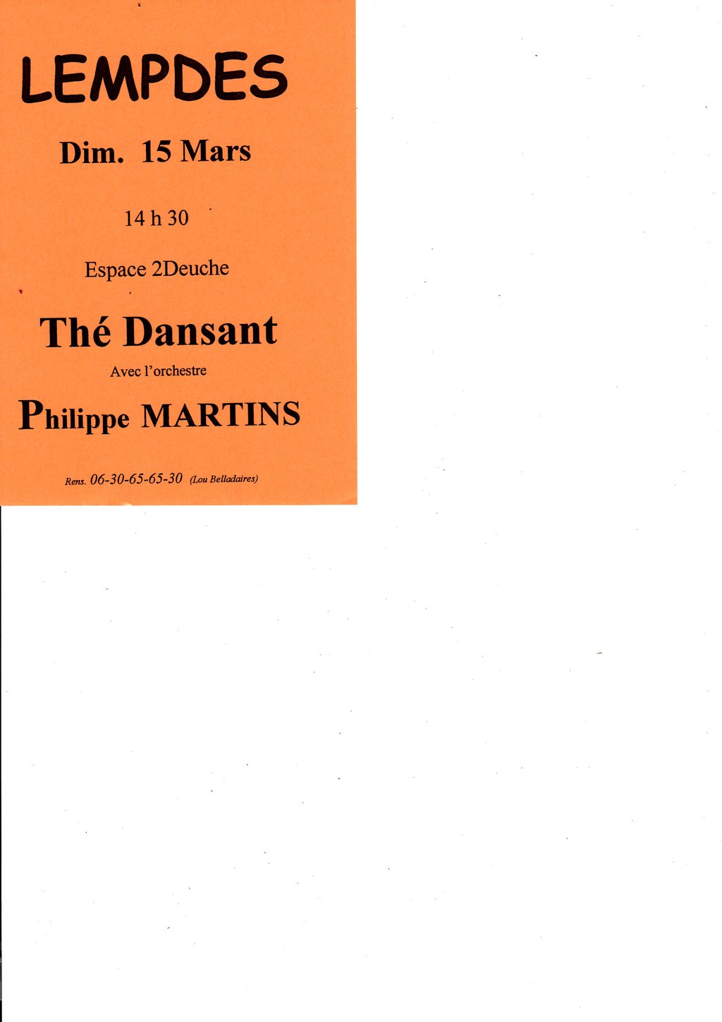 Thé dansant animé par l'orchestre de Philippe MARTINS - dimanche 15 mars à partir de 14 h 30, à l'espace 2Deuche à LEMPDES.