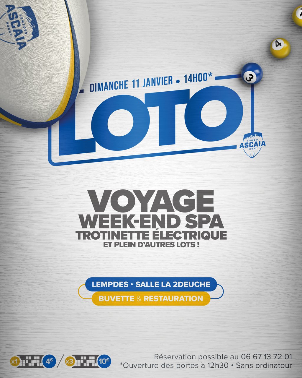 LOTO DU RUGBY AIA DE LEMPDES, OUVERTURE A PARTIR DE 12H00
