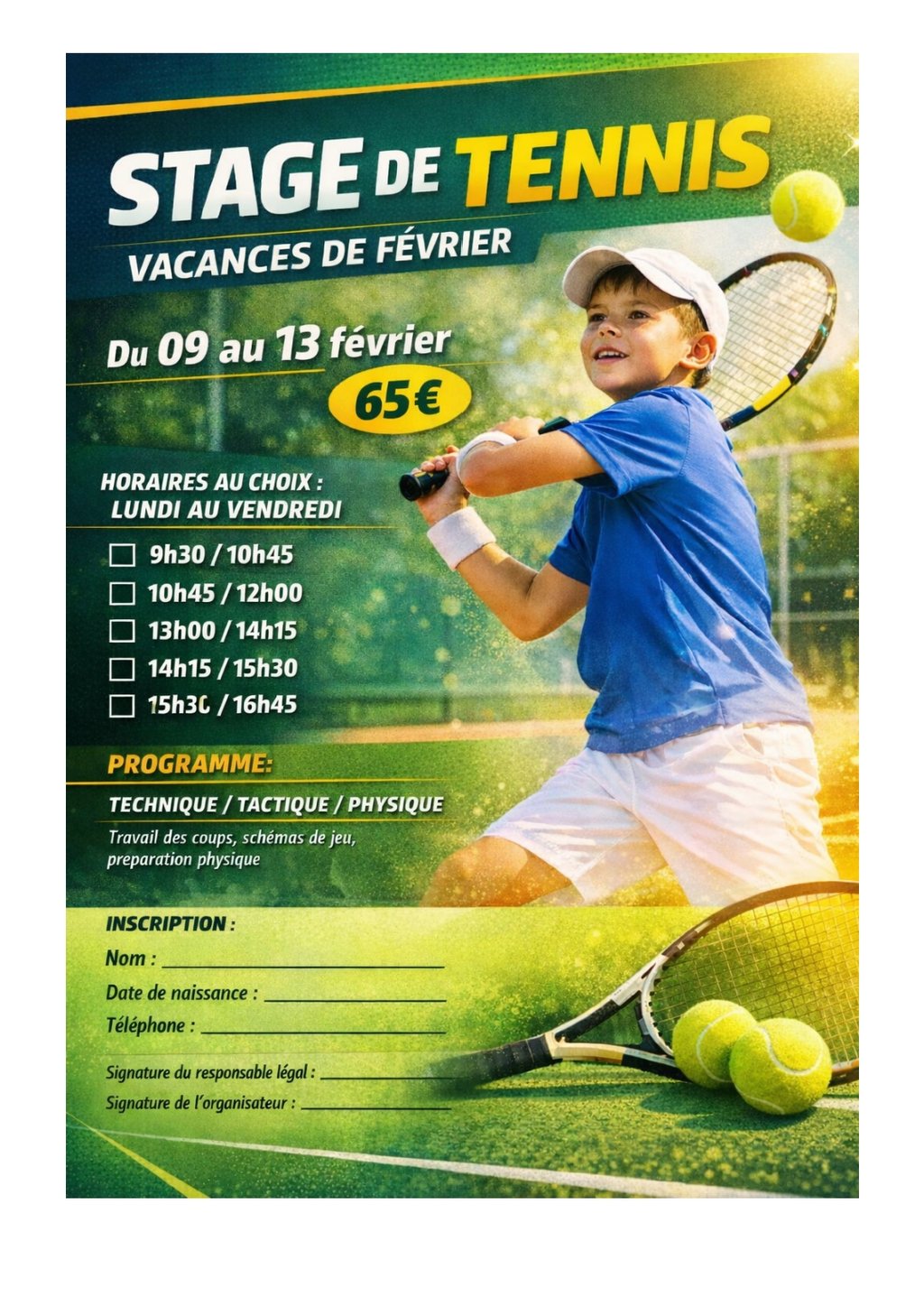 Stage de tennis 1h/jour proposé par notre coach