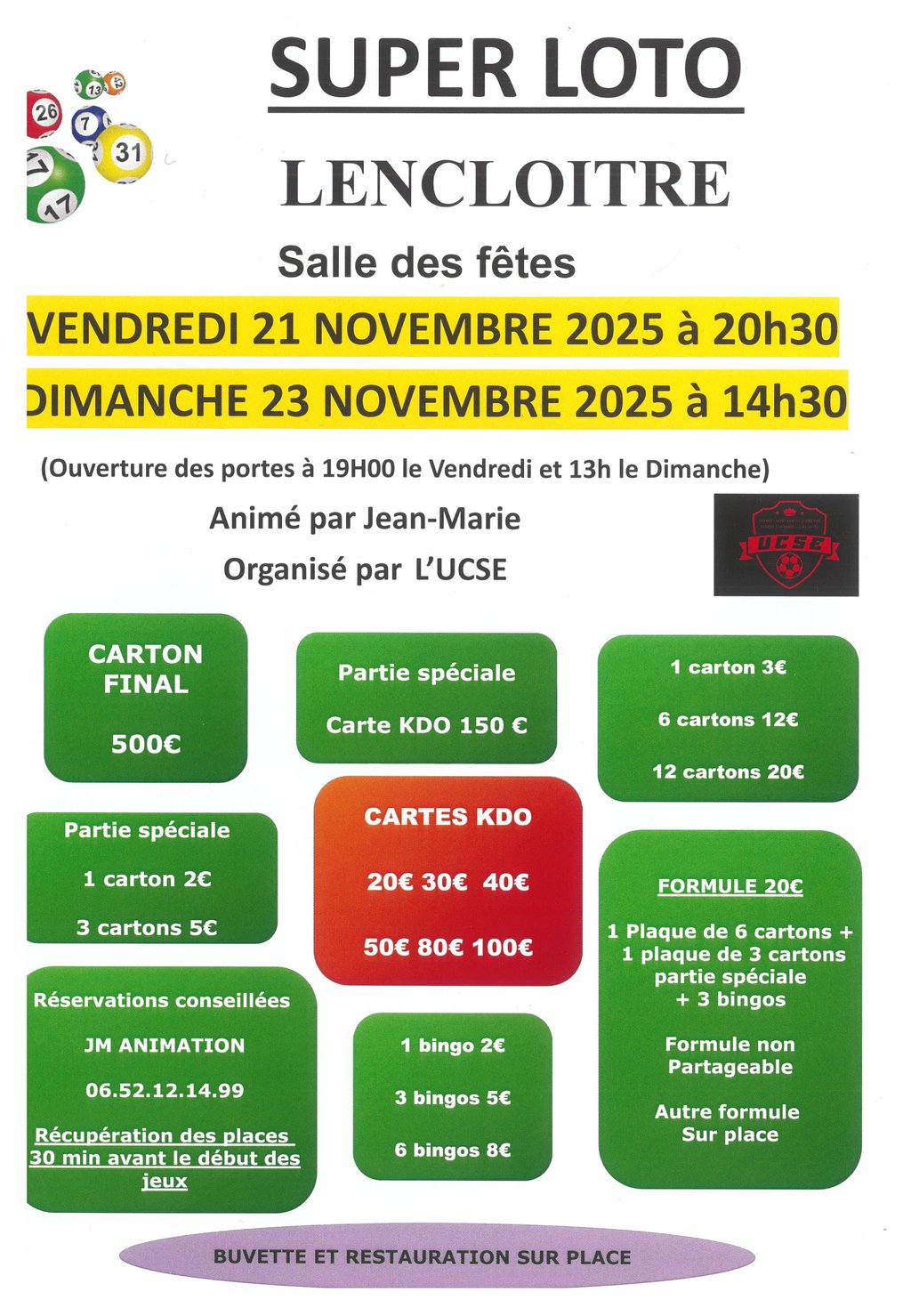 Super loto animé par Jean-Marie et organisé par l'UCSE