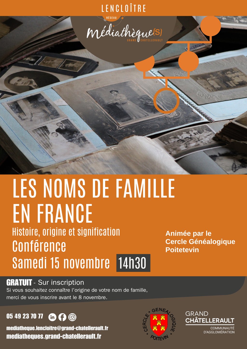 Si vous souhaitez connaître l'origine de votre nom de famille, merci de vous inscrire avant le 8 novembre.