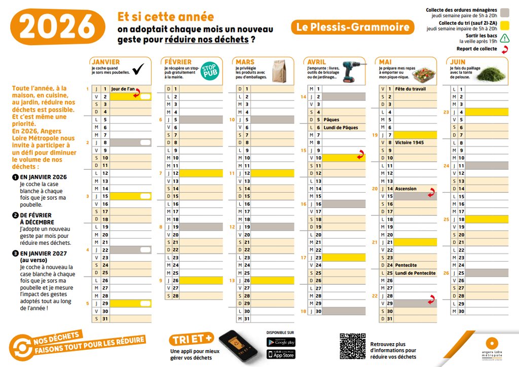 - Le Plessis-Grammoire : la collecte des ordures ménagères initialement prévue jeudi 8 janvier est reportée au jeudi 15 janvier