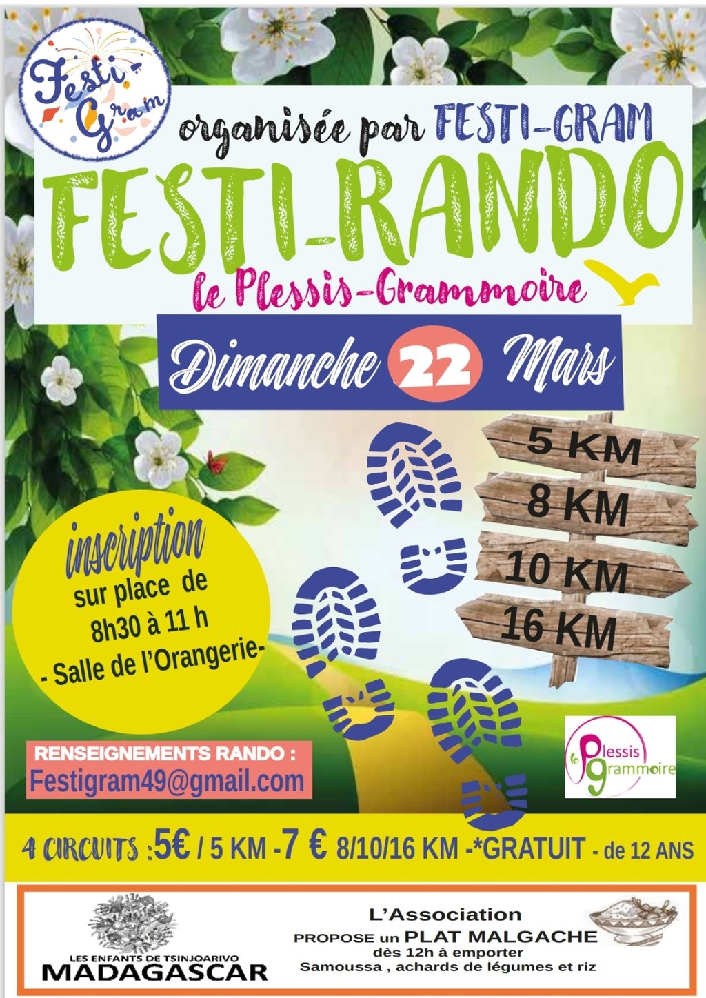 Festi-Rando âđ„Ÿđ„Ÿ Une balade printaniĂšre au Plessis-Grammoire le dimanche 22 mars. Festi-Gram invite petits et grands Ă chausser leurs chaussures de marche pour la Festi-Rando.