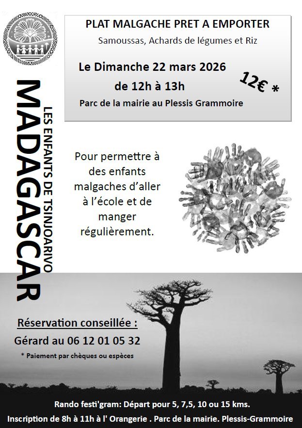 Venez régaler vos papilles le 22 mars. En venant chercher votre plat malgache vous soutenez la scolarisation des enfants de Tsinjoarivo !