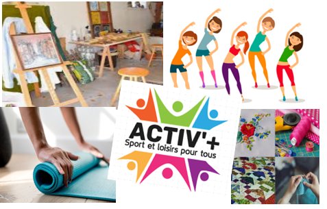 ACTIV'+ vous propose pour la saison 2025/2026 plusieurs activités de sport et de loisirs : Danse en Ligne, Yoga, Modern Jazz enfants et adultes, Atelier Textile, Peinture Libre, Gym d'entretien, Gym adaptée, Fitness, Zumba, Stretching, Pilates, Atelier Mémoire.
