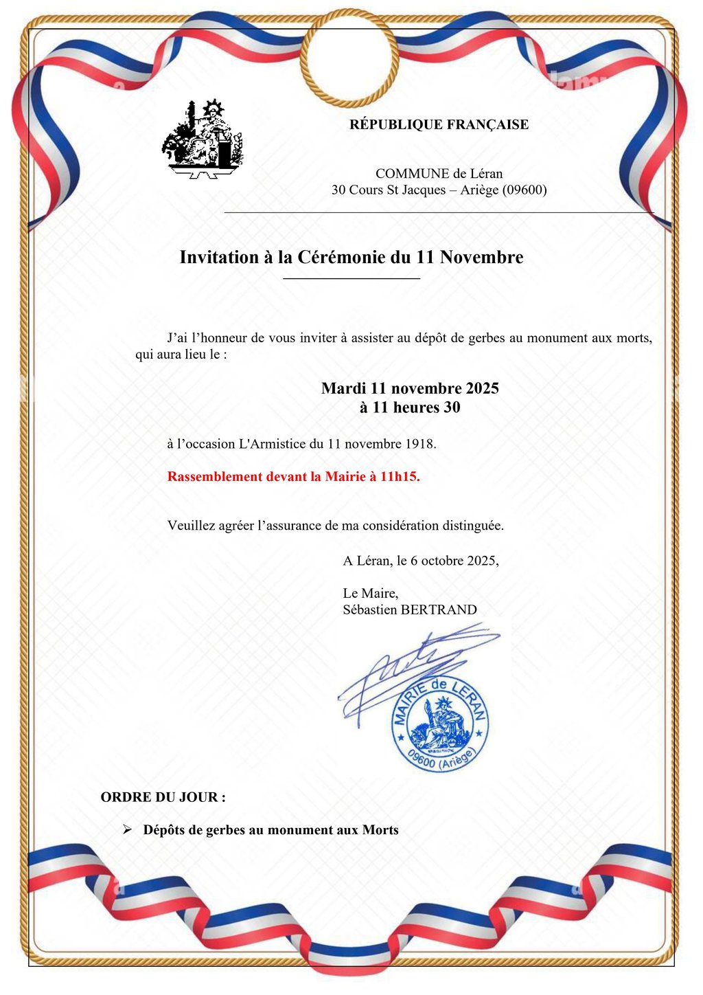 INVITATION CEREMONIE DU 11 NOVEMBRE