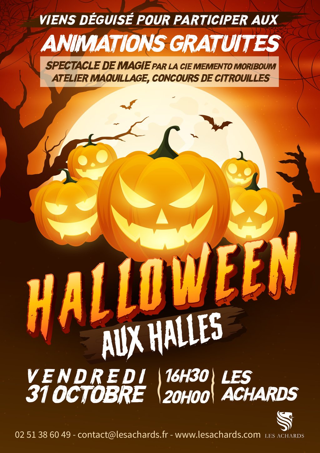 La Municipalité convie petits et grands à célébrer Halloween aux Halles le vendredi 31 octobre, de 16h30 à 20h00. Une fin d’après-midi placée sous le signe du mystère, de la magie et des frissons ! Les participants sont invités à venir déguisés, pour plonger pleinement dans l’ambiance ensorcelante de la fête.