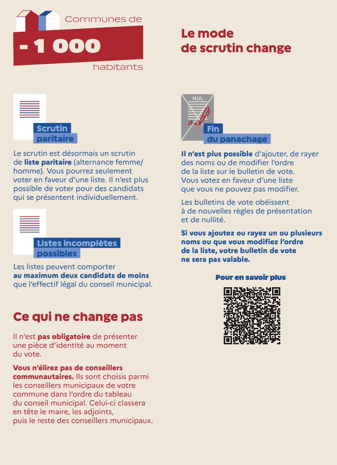 ÉLECTIONS MUNICIPALES 2026 LE MODE DE SCRUTIN CHANGE POUR LES COMMUNES DE MOINS DE 1 000 HABITANTS.