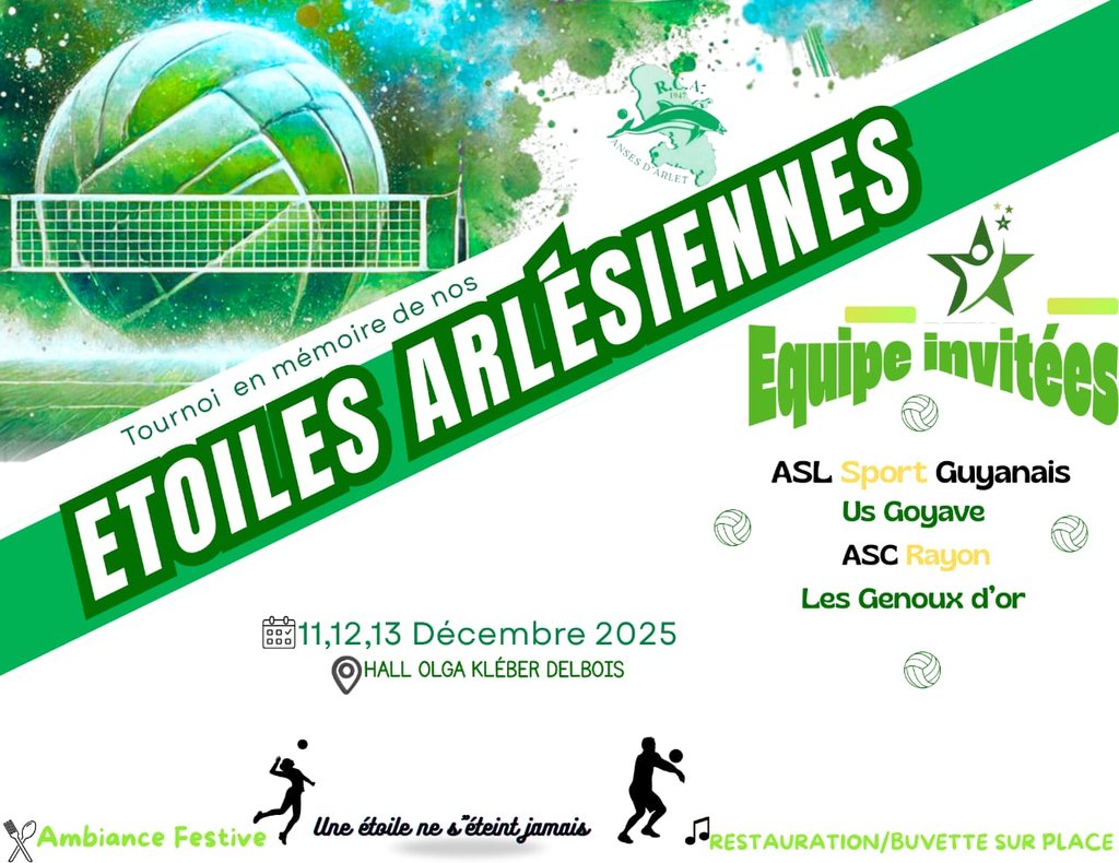 L’association RCA – Racing Club Arlésien organise trois journées de tournoi les 11, 12 et 13 décembre 2025 au Hall Kléber Delbois.