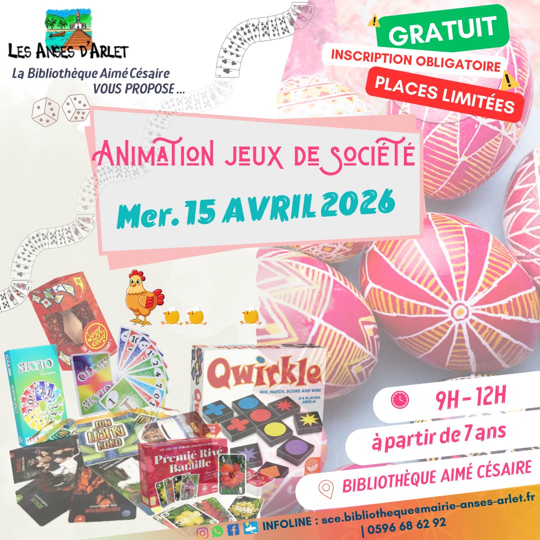 Animation Jeux de société, le mercredi 15 avril 2026 de 9h à 12h !