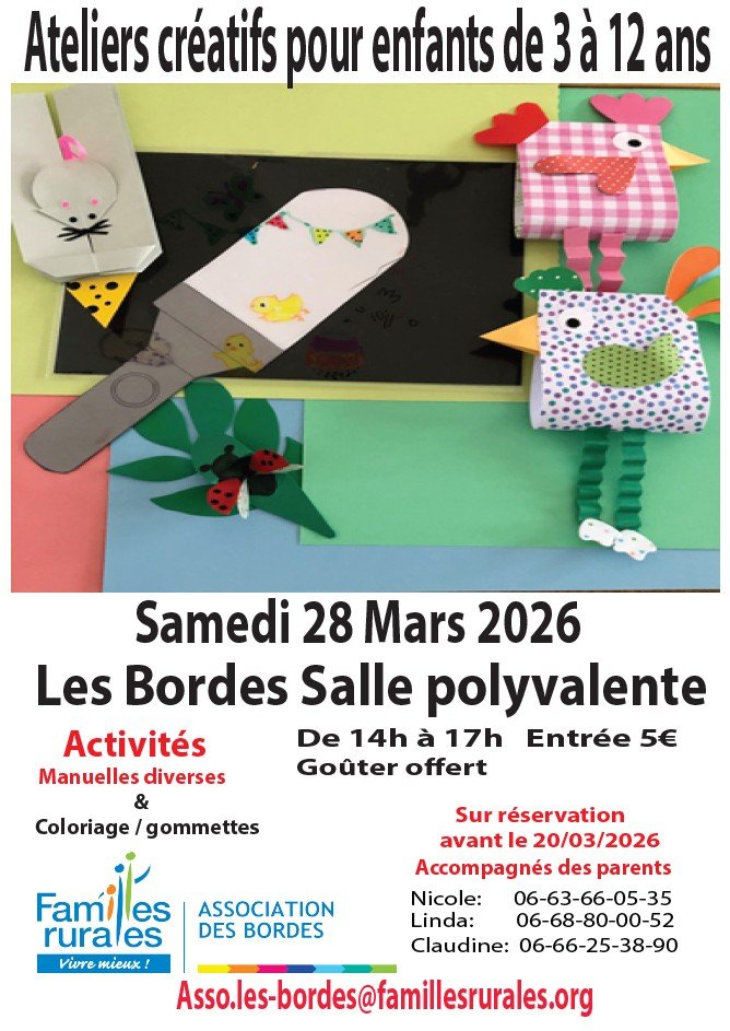Ateliers créatifs pour enfants de 3 à 12 ans