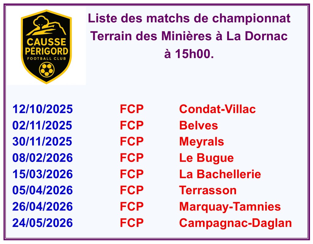 Vous pouvez consulter la liste des matchs joués à domicile en cliquant sur le lien ci-dessous ou en faisant défiler l'image.