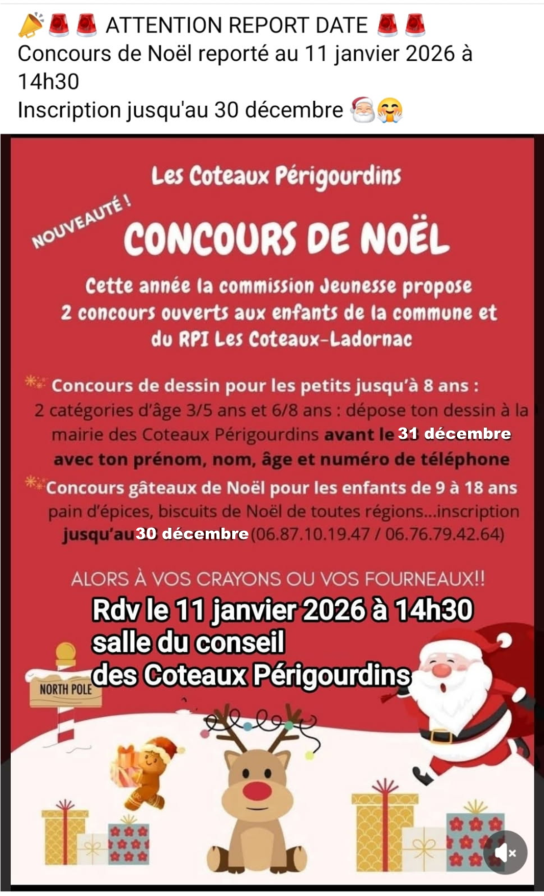 REPORT DES INSCRIPTIONS - 2 CONCOURS DE NOËL - NOUVEAUTÉ !