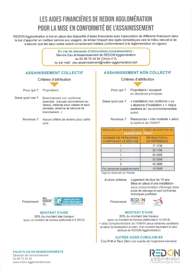 LES AIDES FINACIÈRES DE REDON AGGLOMÉRATION POUR LA MISE EN CONFORMITÉ DE L'ASSAINISSEMENT