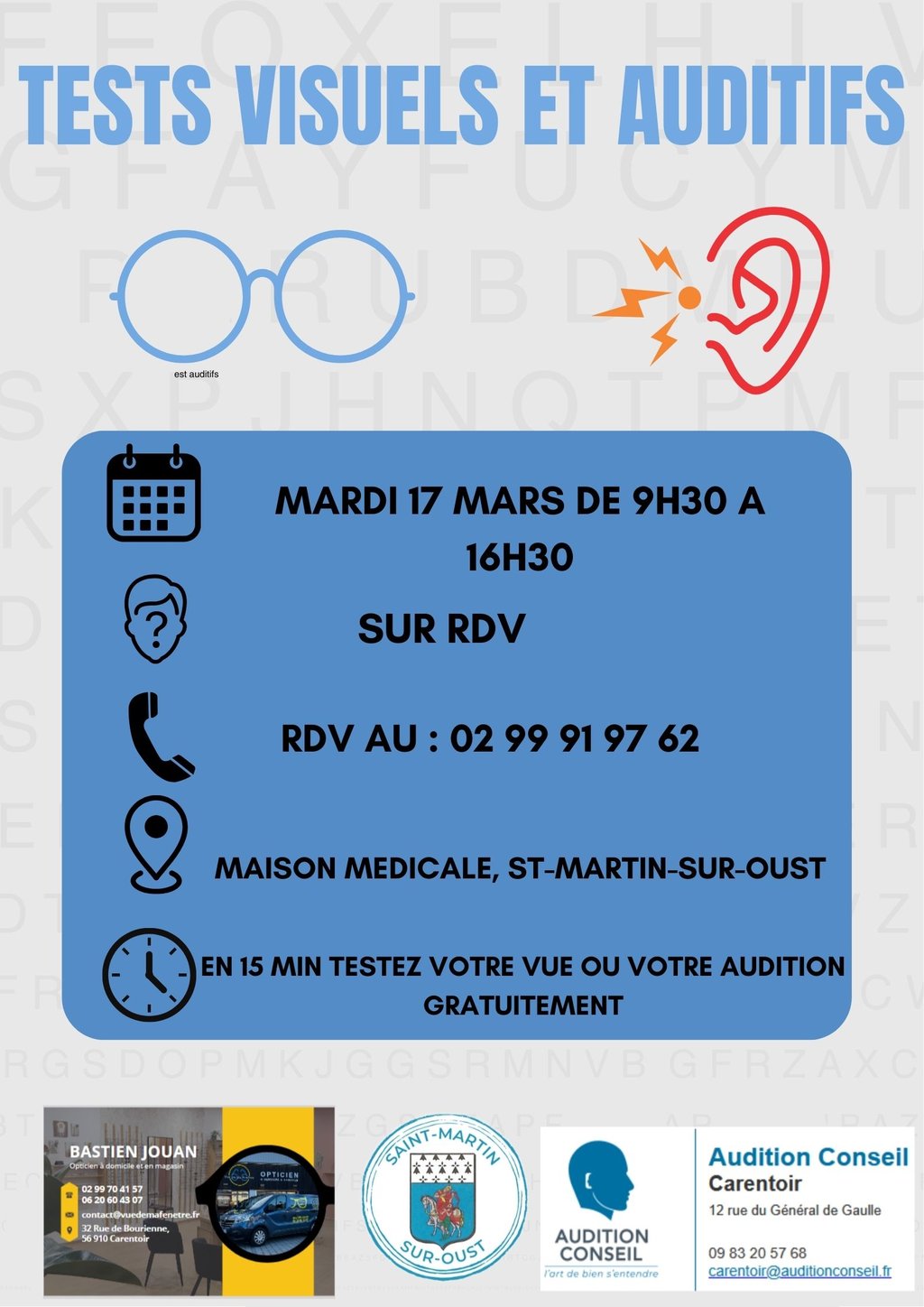 Tests visuels et auditifs à la maison médicale de Saint-Martin-sur-Oust le 17 mars de 9h30 à 16h30 sur RDV