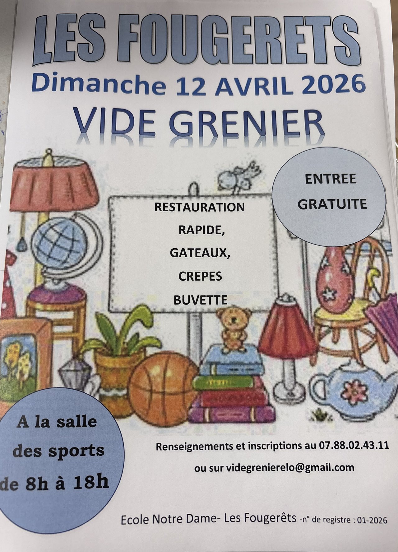 DIMANCHE 12 AVRIL 2026 - VIDE GRENIER - SALLE DES SPORTS - LES FOUGERETS