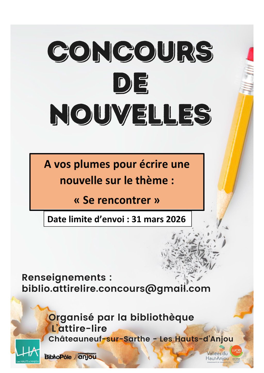 La bibliothèque l’Attire-Lire de Châteauneuf-sur-Sarthe organise la sixième édition de son concours de nouvelles.